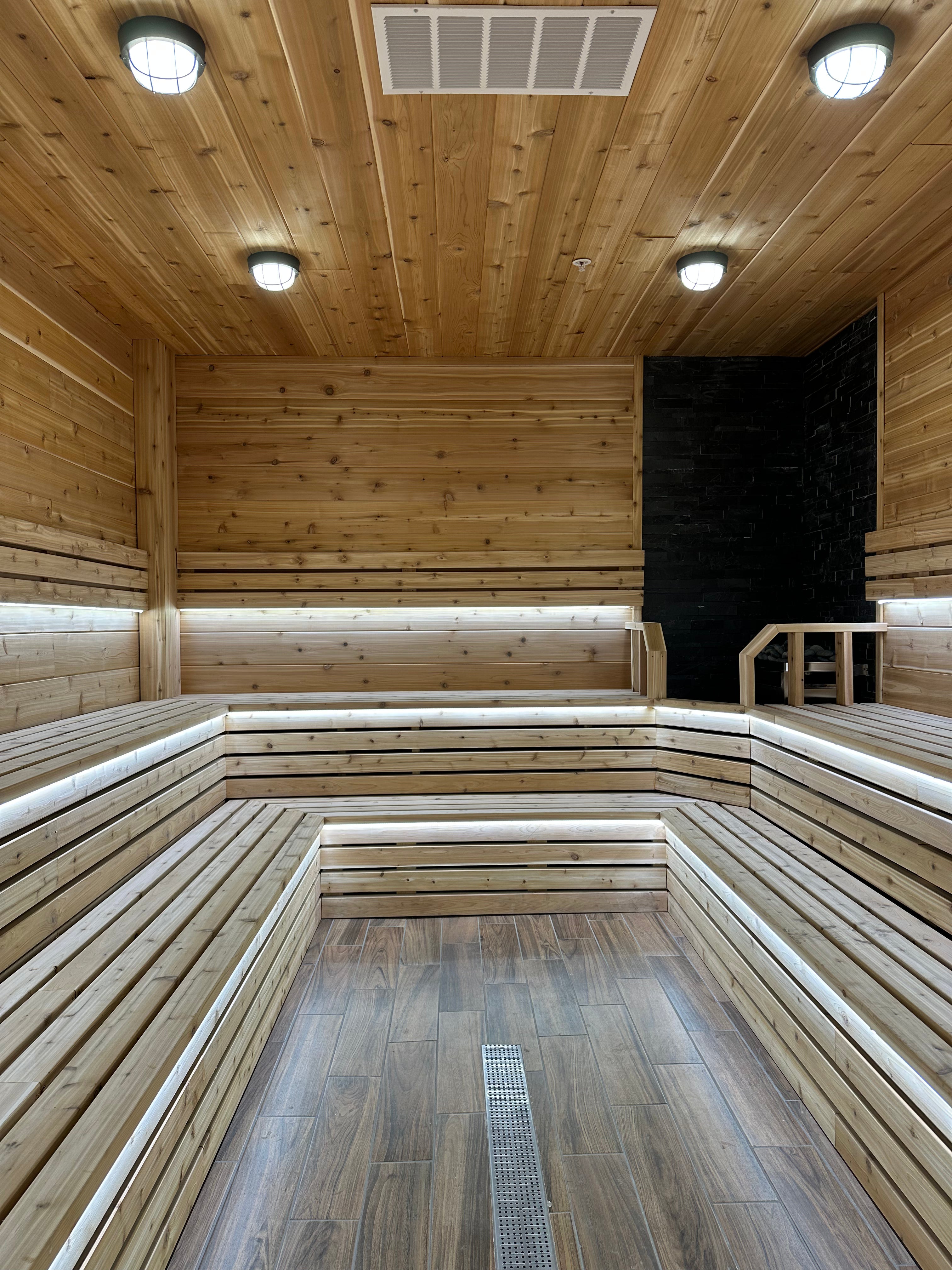 Experience relaxation surrounded by our custom-built saunas, the performance & control of our cold plunges, design of our high-end, touch-less fixtures and thoughtful details.